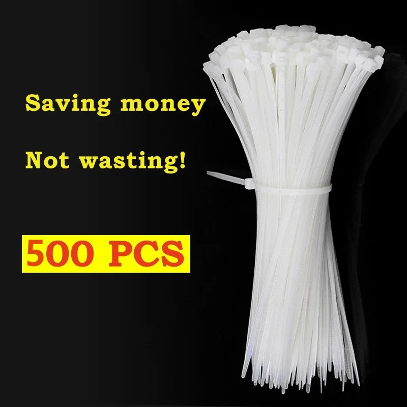 500PCS White Cable Ties Fasten Loop Tie Organiser Fasten Cable Plastic Nylon Wire Cable Zip Ties Self-Locking Cable Ties