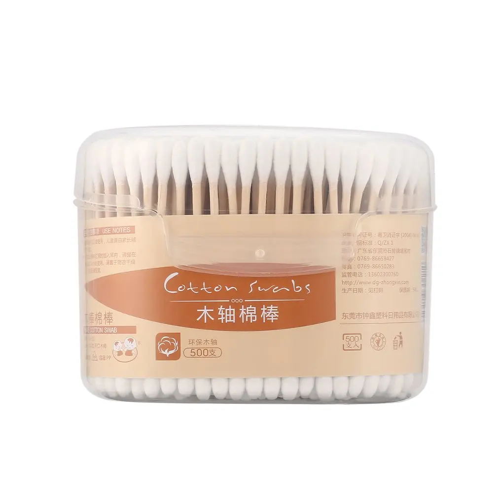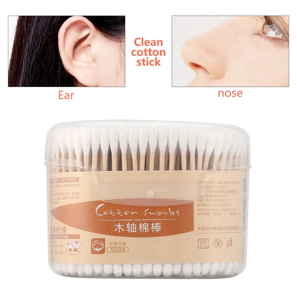 500PCS/Box Compact Size Natural Cotton Swabs Wood Sticks Nose Ears Cleaning Cosmetics Home Health Care Cotton Buds