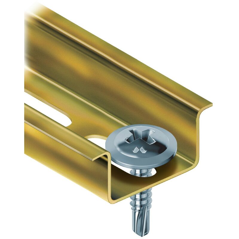 Autoperforanti per canaline. in acciaio speciale con zincatura bianca. adatte per l avvitamento diretto su lamiere e laminati metallici senza preforo. testa a fungo flangiata larga con cava ph. diametro 4.2 mm lunghezza 19 mm