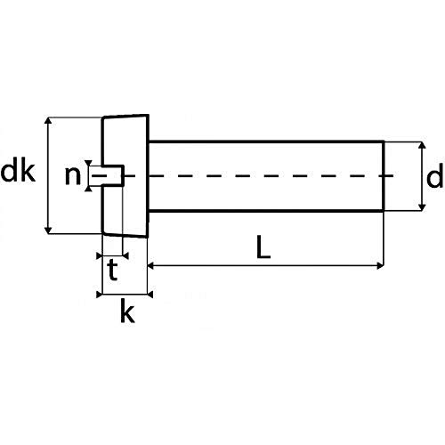 Dimensioni mm (D X L): 2.5 X 10, forma della testa: testa cilindrica, azionamento: intaglio, DIN84 (simile a ISO1207).