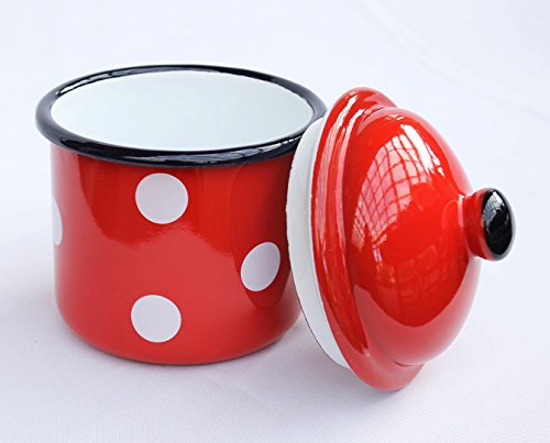 Contenitore-barattolo 501Z Barattolo 15cm smaltato Vintage Stile country Barattolo per farina Smalti Barattolo-Tee Barattolo-caffè (rosso con puntini bianchi)