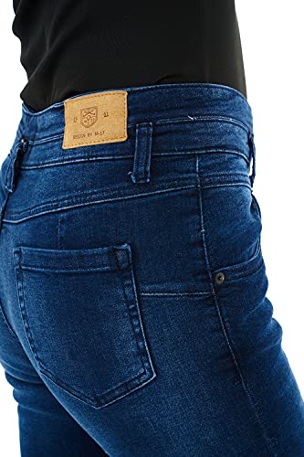 M17 5056242785699 Donna Vita Alta in Denim Jeans a Doppio Bottone Pantaloni Casual in Cotone con Tasche (12, Mid Wash Blue)