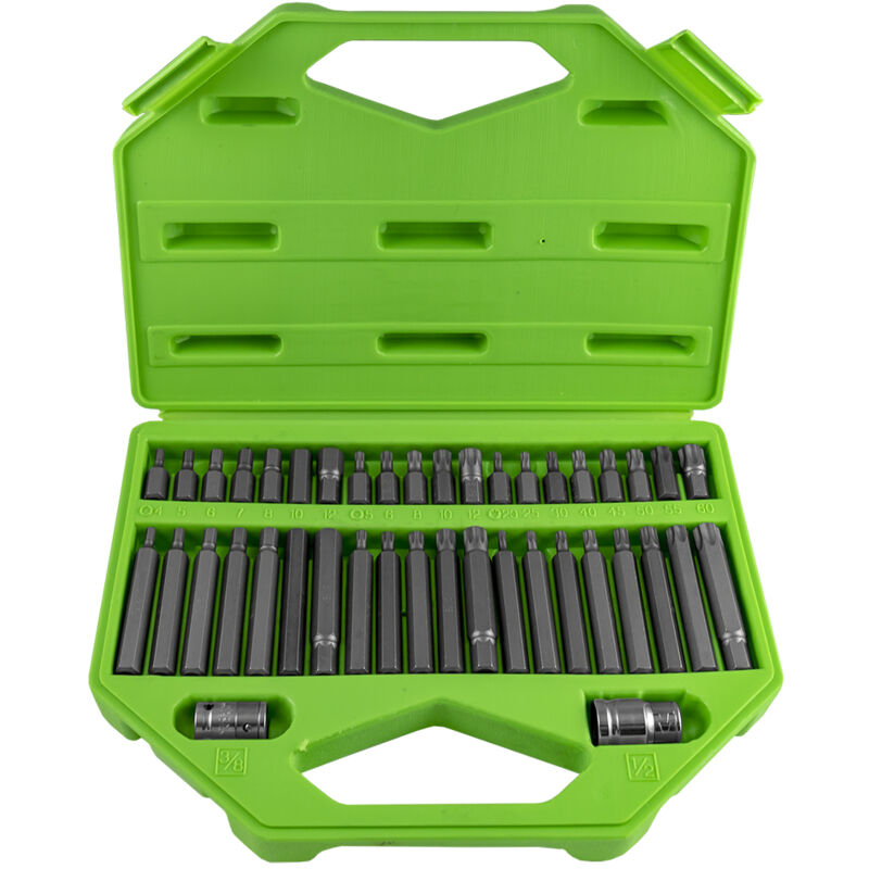 VALIGETTA CONTENENTE: / / 7 Esagoni da 30 mm: 4, 5, 6, 7, 8, 10 e 12 mm / 7 Esagoni da 75 mm: 4, 5, 6, 7, 8, 10 e 12 mm / 8 Torx 30 mm: T20, T25, T30, T40, T45, T50, T55, T60 / 8 Torx 75 mm: T20, T25, T30, T40, T45, T5
