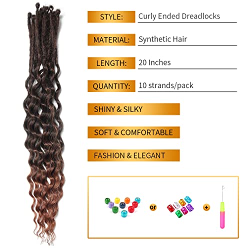 50cm Curly Ended Dreadlock Estensioni Single Ended Crochet sintetici Dreadlocks accessori Nero Marrone 1B/30# Braid Dreads Locs Estensioni (20 pollici,10 locs)