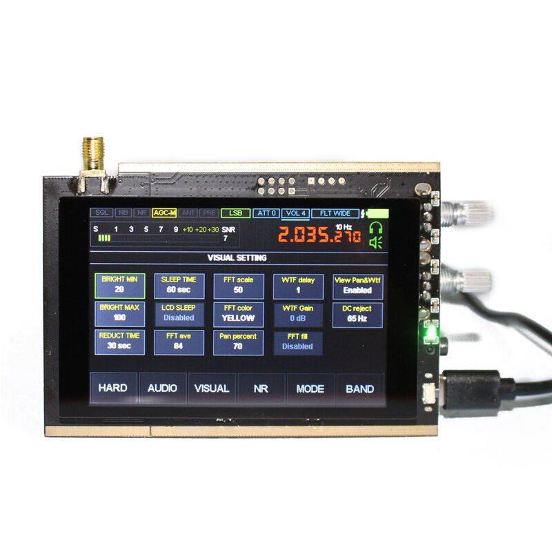 Questo prodotto è un ricevitore utile nel tuo quotidiano. Supporta la modulazione analogica AM/SSB/NFM/WFM, con schermo IPS touch da 3,5 pollici, puoi vedere i dati in modo più chiaro. Vieni a provarlo, non ti deluderà. Caratteristiche: Il ricevitore si basa sull'architettura principale e le sue funzioni sono determinate dal software caricato. Tutti i tipi di modulazione analogica: AM,SSB,NFM,WFM e le gamme di frequenza sono 50K~200MHz, 400~2GHz. Multifunzioni: larghezza del filtro variabile, soppressore del rumore adattivo, soppressore del rumore di soglia, Noise blanker, AGC, equalizzatore, un UHF integrato. Adotta il chip multifunzione msi001 e viene utilizzato il potente STM32H743 con una frequenza di clock di 480 MHz. Connettiti al computer tramite USB, che può trasferire CA-T, IQ e audio, con intervallo di 160kHz, con scalabilità. Scheda aggiuntiva integrata con follower sorgente e anche con la funzione di retroilluminazione, offrendoti un'esperienza migliore. Specifiche