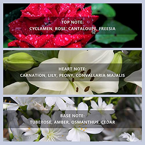 [Affascinante unico]: le note centrali di questo profumo sono garofano, giglio, peonia e verbena. La sua fragranza delicata e naturale aggiunge un fascino più unico alle donne.