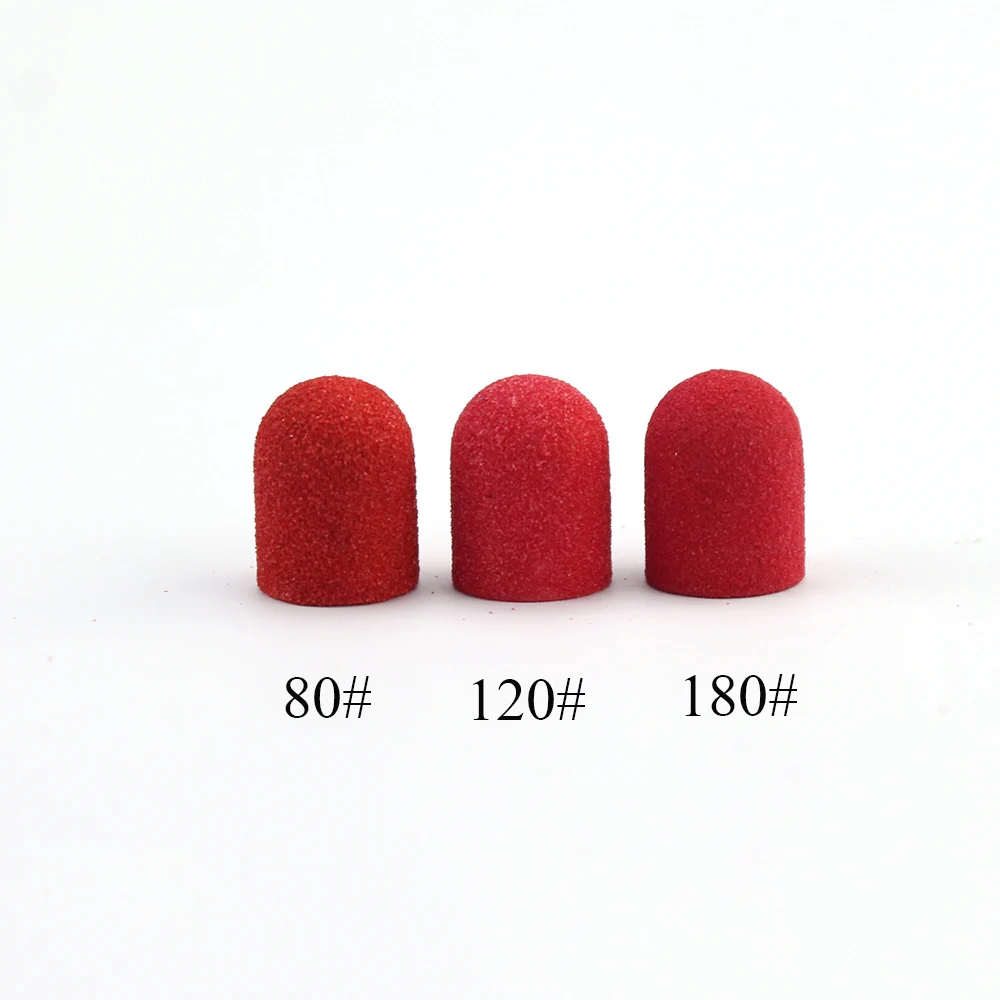 50pcs 10*15mm Red Nail Drill Accessories Pedicure Sanding Cap Foot Cuticle Milling for Manicure Pedicure Art Tools