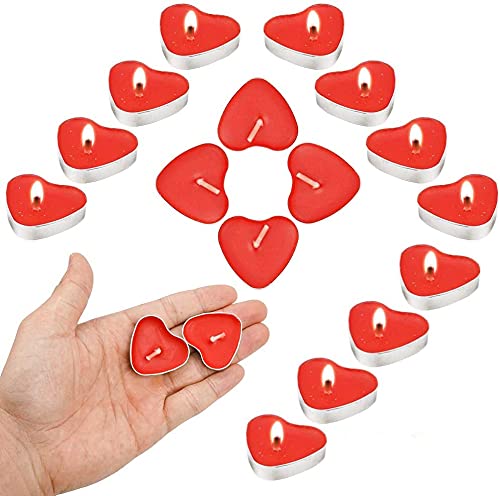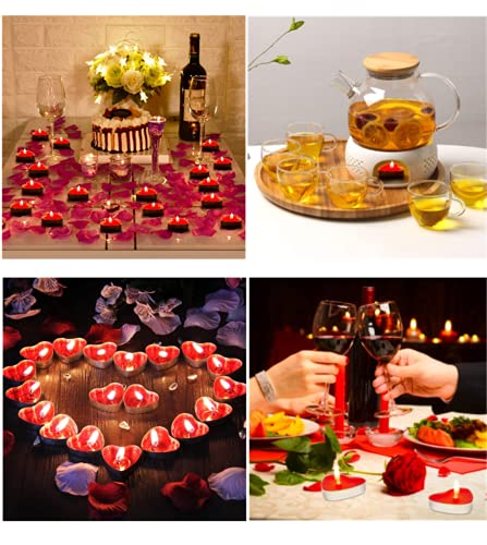 Dimensioni appropriate: Candele Love Heart Tea Lights dimensioni 3,8 cm/ 1,5 pollici di diametro,Queste candele romantiche sono realizzate in cera di paraffina atossica con latta di alluminio, ecologiche,Si illuminano sul tavolo o galleggiano nell'acqua per creare un'atmosfera romantica atmosfera a lume di candela piacevole e calda.