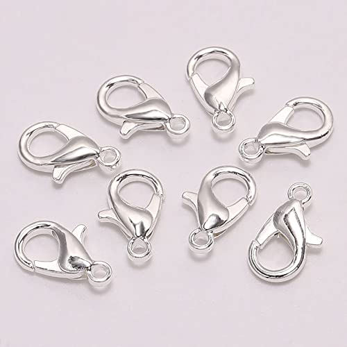 Dimensioni e quantità: riceverai 50 pezzi di chiusura a moschettone e 100 pezzi di anello di salto aperto, argento, la dimensione è: gancio per aragosta: 12 * 6 mm;
