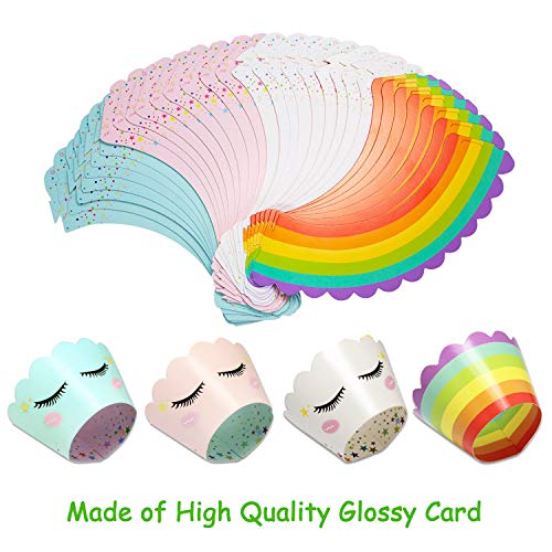 ✔ Degno rifornimenti del partito di unicorno - Il set di cupcake unicorno include 50 toppers cupcake e 50 pezzi di involucri di cupcake, ci sono tre stili, ognuno dei quali è divertente e carino.