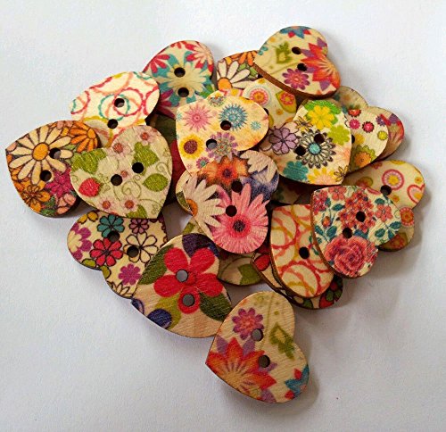 50pcs fiore dipinto 2 fori bottoni in legno a forma di cuore