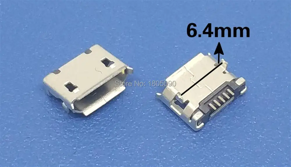 50pcs micro USB mini connector 5pin 6.4mm short needle 5P DIP2 Data port Charging port mini usb connector for Mobile end plug