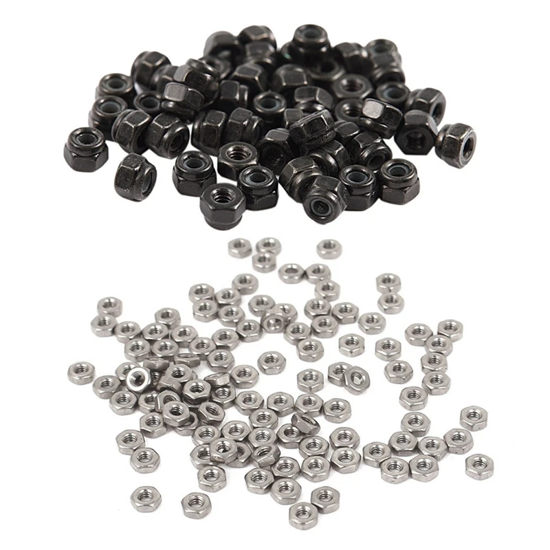 50Pcs M2 Zinc Plated Nylock Nylon Insert Hex Lock Nuts Black & 100Pcs M2 Hex Nuts 304 Stainless Steel Fastener DIN934