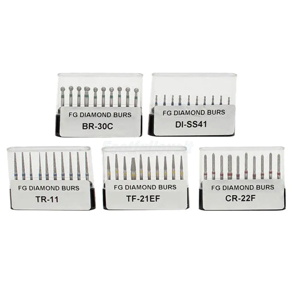 50pcs/5box Dental Diamond Burs for High Speed Handpiece Medium FG 1.6MM Dentist Tools Polishing Drills Dental Lab