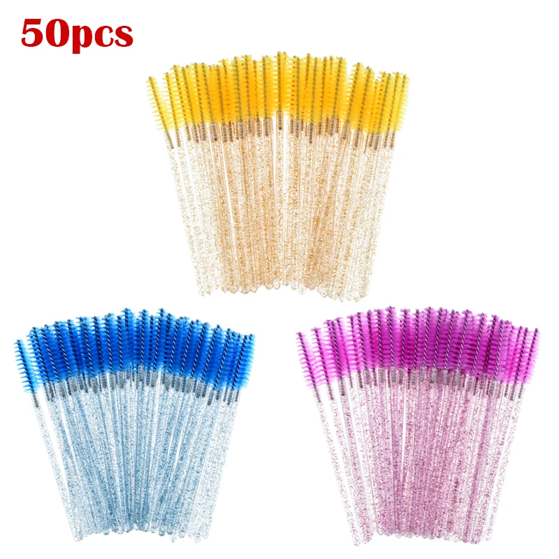 50pcs/Bag Eyelash Brush Eyelashes Extension Tools Diamond Handle Eye Lashes Cosmetic Brushes Eyebrow Brush