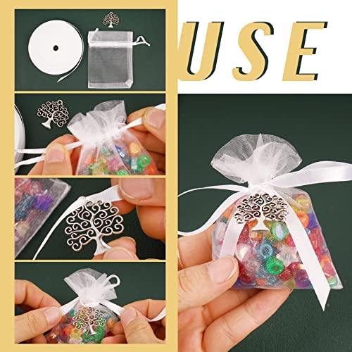 ❤Il pacchetto include: circa 50pz sacchetti bianco+50pz ciondoli albero della vita+50pz sacchetti plastica+22m nastro bianco.