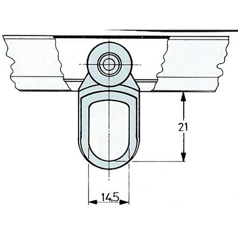 Art. 903 scorrevole nylon con 2 ruote in nylon ¦ 15 mm a completa corona di sfere. portata 8 kg. dimensioni 14,5 x 21 mm.