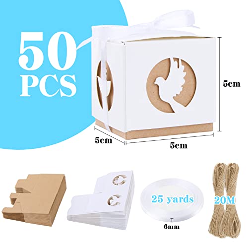 ❤Il pacchetto include: 50 pz scatoline portaconfetti prima comunione, 2 rotoli corda iuta e natrso bianco.