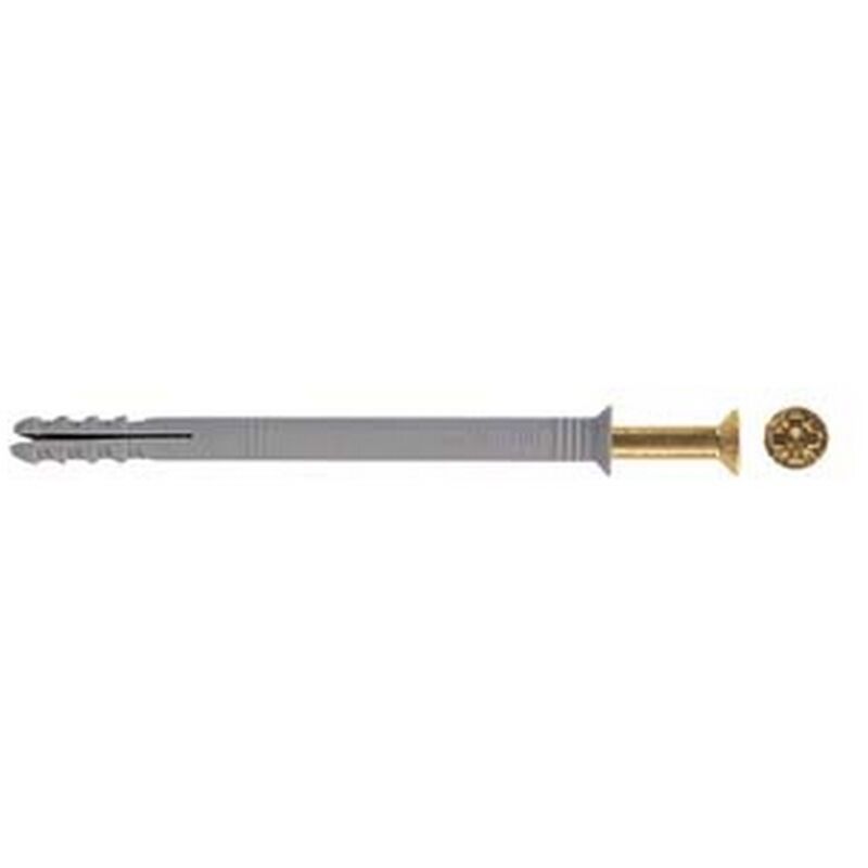 Tassello in nylon con bordo svasato - fornito con vite chiodo premontata a testa svasata piana con impronta pozidrive in acciaio zincocromato