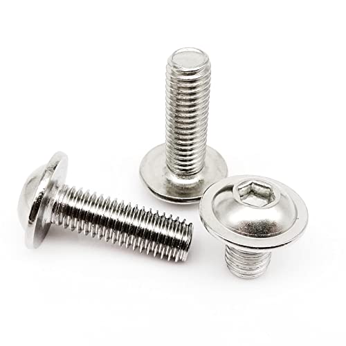 5/10/50pcs M2 M2.5 M3 M4 M5 M6 M8 M10 304 acciaio inossidabile esagonale esagono incassato pulsante tondo flangia testa con rondella guarnizione vite bullone (Color: 12mm_10pcs M6)