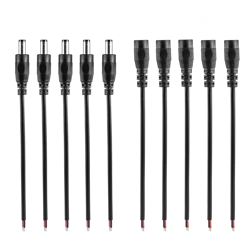 5/10pcs 5.5mmx2.1mm Jack Plug Male Female DC Power Pigtail Cable Copper Wire Connector For 3528 5050 LED Strip Light Solar Panel