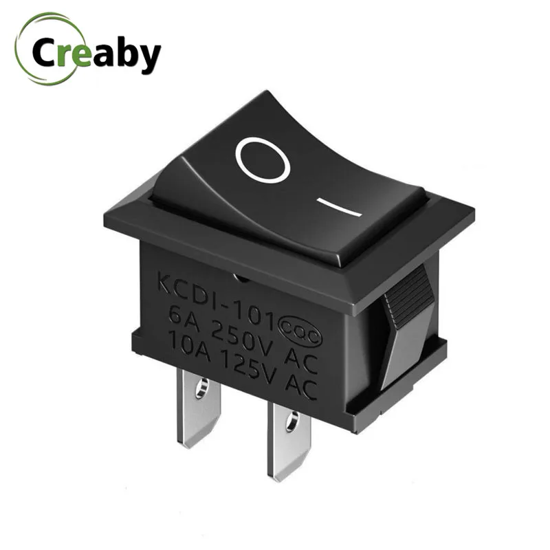 5/10PCS ON-OFF 2 Pin Boat Rocker Switch 6A-10A 250V 125V 15*21mm Kcd1-101 Snap-In Black Push Button Switches