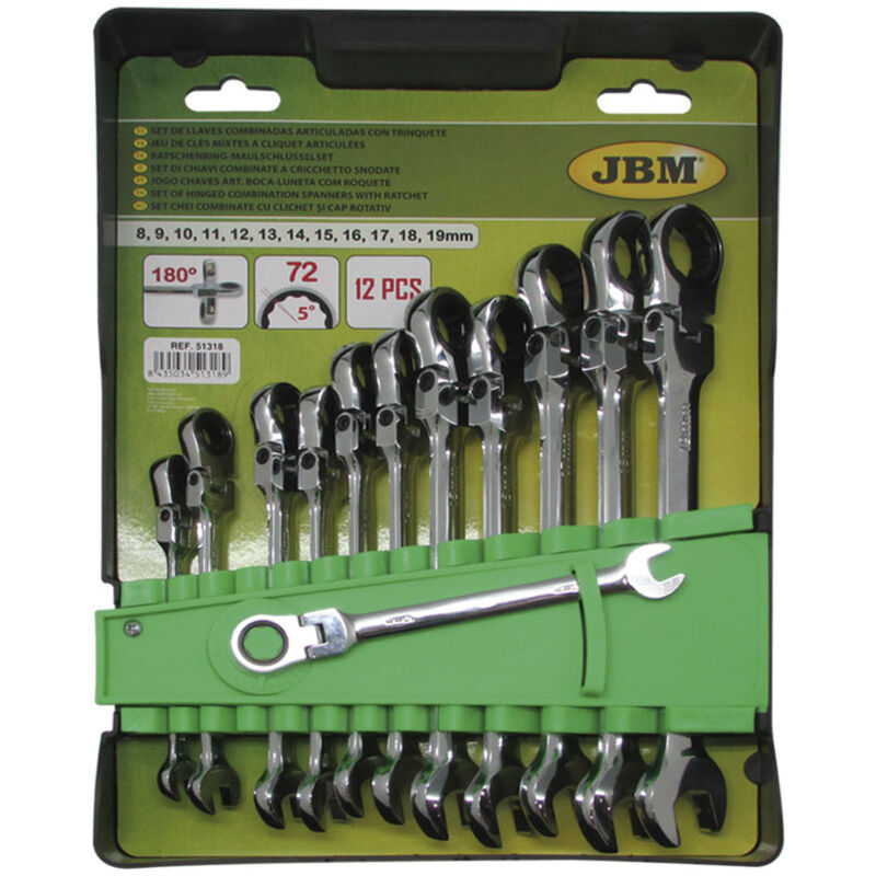 Testa articolata da 0° a 180° - Cricchetto a 72 denti con arco di 5° - Presentazione in blister rigido nero MISURE: 8, 9, 10, 11, 12, 13, 14, 15, 16, 17, 18 e 19 mm