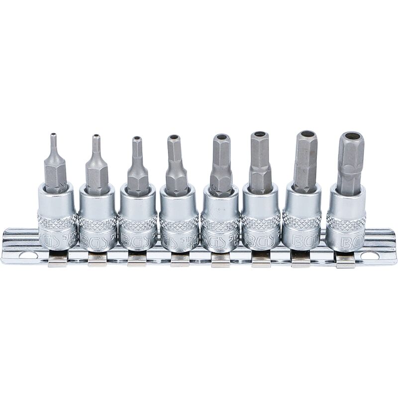 Con zigrinatura. Su guida in metallo. Contenuto della confezione: 1 inserto per punte, lunghezza: 38 mm, attacco interno quadrato 6,3 mm (1/4), esagono incassato con foro 2 mm. 1 inserto per punte, lunghezza: 38 mm, attacco interno quadrato 6,3 mm (1/4), esagono incassato con foro 2,5 mm. 1 inserto per punte, lunghezza: 38 mm, attacco interno quadrato 6,3 mm (1/4), esagono incassato con foro da 3 mm. 1 inserto per punte, lunghezza: 38 mm, attacco interno quadrato 6,3 mm (1/4), esagono incassato con foro 4 mm. 1 inserto per punte, lunghezza: 38 mm, attacco interno quadrato 6,3 mm (1/4), esagono incassato con foro 5 mm. 1 inserto per punte, lunghezza: 38 mm, attacco interno quadrato 6,3 mm (1/4), esagono incassato con foro 5,5 mm. 1 inserto per punte, lunghezza: 38 mm, attacco interno quadrato 6,3 mm (1/4), esagono incassato con foro 6 mm. 1 inserto per punte, lunghezza: 38 mm, attacco interno quadrato 6,3 mm (1/4), esagono incassato con foro 7 mm.