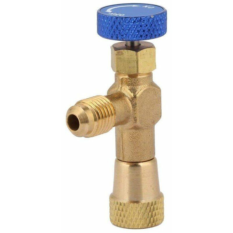 Specifiche: - Nuova e alta qualità. - Colore: blu † e oro. - Materiale: lat√≥n. - Collegamenti: 1/4 femmina † x 5/16 maschio. - Facile da usare. ¬ † Per carichi di gas refrigerante senza perdita. Evita le ustioni nelle mani quando si rimuove il tubo.