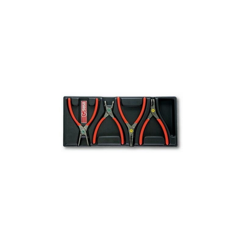 Caratteristiche modulo Usag 519/127N: Dimensioni 415x188x45 n.1 127 N - Pinze a becchi diritti per anelli elastici interni (19÷60) n.1 127 PN - Pinze a becchi piegati a 90° per anelli elastici interni (19÷60) n.1 128 N - Pinze a becchi diritti per anelli elastici esterni (19÷60) n.1 128 PN - Pinze a becchi piegati a 90° per anelli elastici esterni (19÷60) n.1 519/127NV - Modulo in termoformato vuoto
