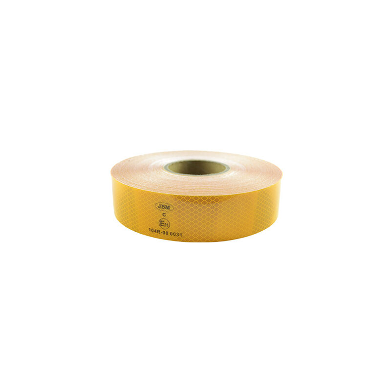 Applicazione dal 10 luglio 2011 secondo la modifica del Regolamento Generale dei Veicoli, approvato con Regio Decreto 2822/1998, del 23 dicembre. 2010 Omologazione: REGOLAMENTO UN/ECE 104R DIMENSIONI 50 m bobine indivisibili Larghezza: 50 mm GIALLO