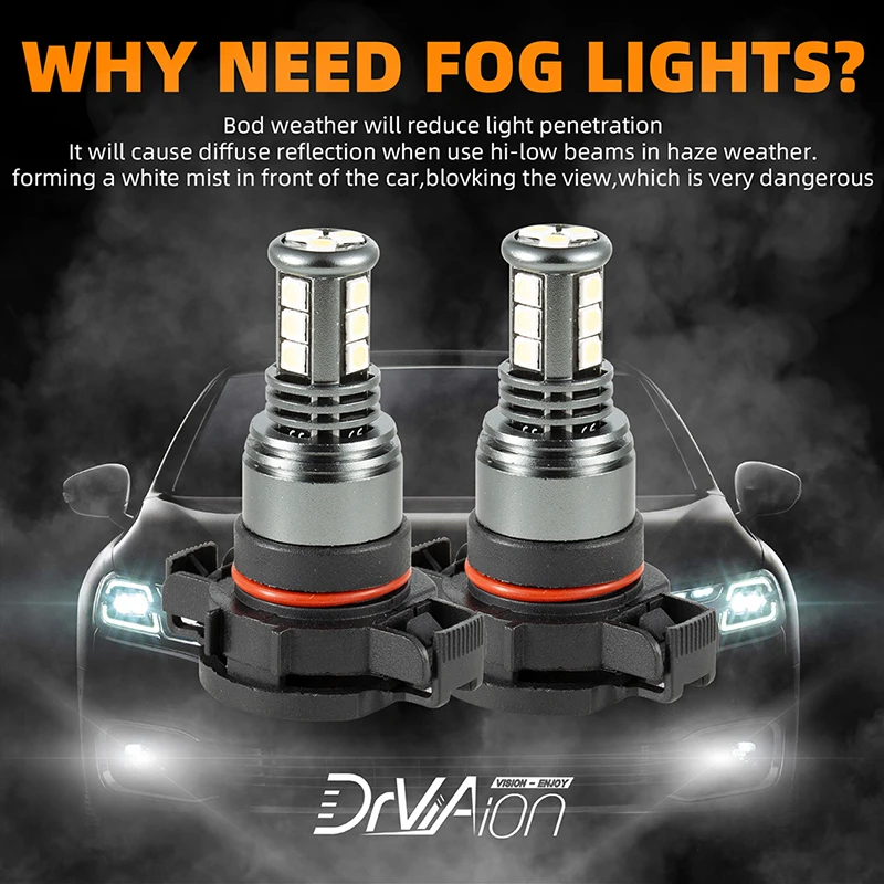 2x H16 / 5202 Led Headlamp Bulb 28w 6500k Super Bright Conversion Kit Aluminum 12v / 24v2 Led Fog Lamps