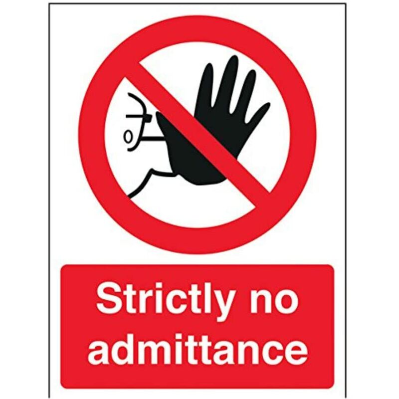 Mostra chiaramente vietata e potenzialmente pericolose azioni che i lavoratori e visitatori deve evitare in gli interessi di salute e sicurezza come per salute e sicurezza (sicurezza segni e segnali) regolamenti 1996 Conforme alla norma EN ISO 7010: 2012 - Divieto segni sono dotati di una circolare rosso simbolo di almeno 35% di superficie totale del segno, su uno sfondo bianco, con un nero pittogramma Orientamento verticale. Cartello dice: rigorosamente No Admittance Materiale plastico altamente resistente 1 mm e schermo stampato messaggio sarà resistere alla prova del tempo Firmare misure 150 X 200 mm. Fornito con linguette adesive per fissarlo a pareti solide