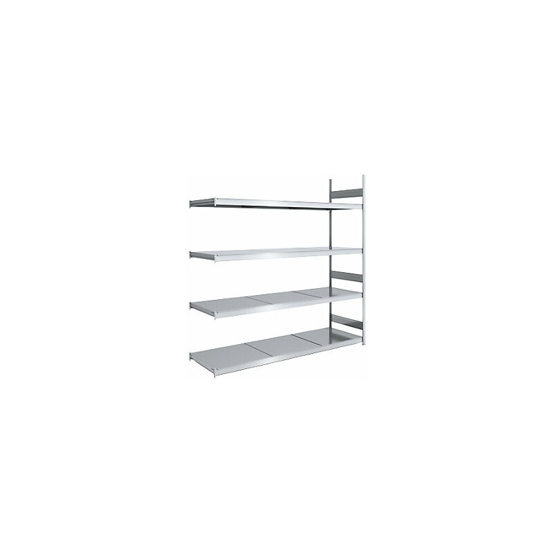 Scaffale a innesto a campata larga, zincato, largh. x prof. ripiano 2250 x 800 mm, scaffale aggiuntivo, 4 ripiani in acciaio, altezza 2500 mm. Fornitura = smontato. Altezza scaffale = 2500 mm. Tipo di scaffale = scaffale aggiuntivo. Materiale = acciaio, zincato. Larghezza totale = 2270 mm. Portata campata = 1750 kg. Portata ripiani = 350 kg. Profondità ripiani = 800 mm. Larghezza ripiani = 2250 mm. Numero ripiani = 4 pz. Tipo di prodotto = scaffali a innesto a campata larga.