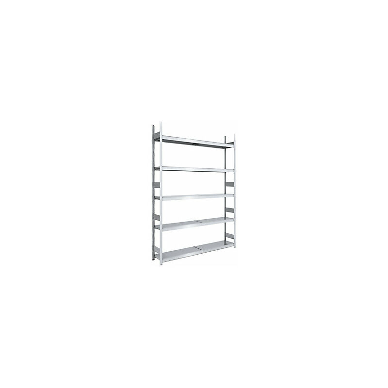 Scaffale a innesto a campata larga, zincato, largh. x prof. ripiano 2000 x 400 mm, scaffale portante, 5 ripiani in acciaio, altezza 3000 mm. Fornitura = smontato. Altezza scaffale = 3000 mm. Tipo di scaffale = scaffale portante. Materiale = acciaio, zincato. Larghezza totale = 2070 mm. Portata campata = 2000 kg. Portata ripiani = 350 kg. Profondità ripiani = 400 mm. Larghezza ripiani = 2000 mm. Numero ripiani = 5 pz. Tipo di prodotto = scaffali a innesto a campata larga.