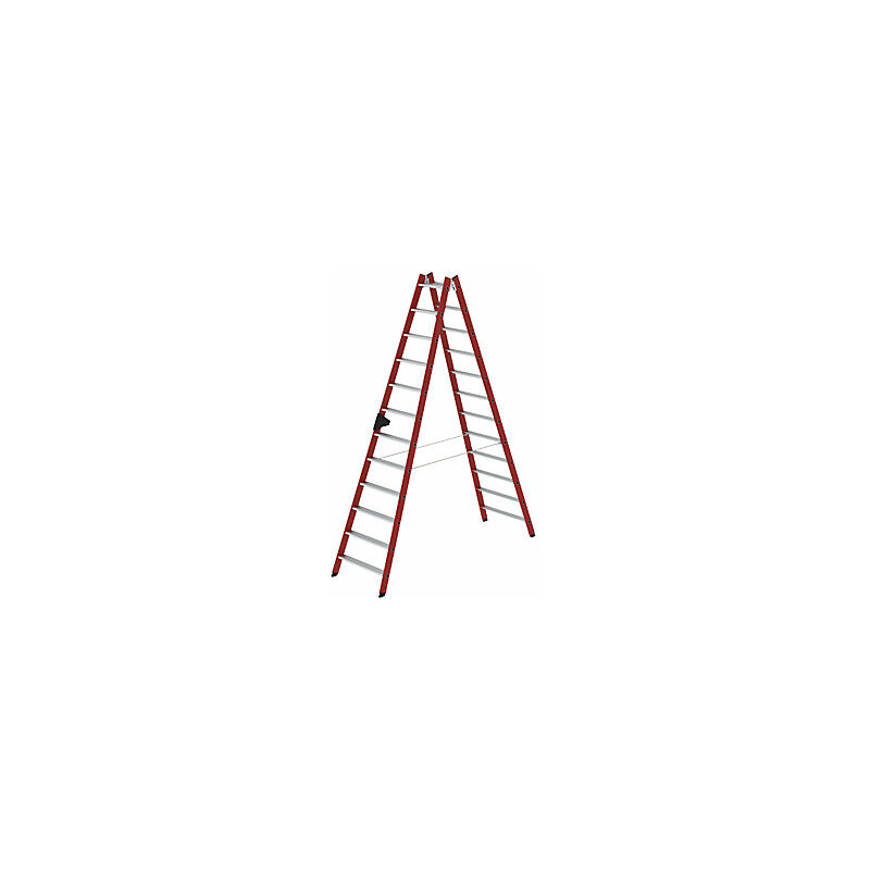 Scala in plastica, con gradini in alluminio striato, 2 x 12 gradini. Fornitura = montato. Tipo di prodotto = scale a libro a gradini, salita su due lati. Altezza di lavoro = 4500 mm. Salita = su due lati. Versione da salita = gradini. Numero gradini = 2x12 pz. Materiale telaio = PRFV (plastica rinforzata con fibra di vetro). Materiale gradini = alluminio, striato. Profondità gradini = 80 mm. Peso = 21.1 kg. Caratteristiche = pieghevole. Portata = 150 kg. Altezza verticale = 3100 mm. Robusta costruzione industriale per l'uso quotidiano. Ideali per le attività nel settore elettrotecnico e in molti settori chimico-farmaceutici. Solido accoppiamento flangiato gradino-montante. Montanti isolanti in PRFV. Massicce cerniere in acciaio. Piedini antiscivolo nivello® . Comoda impugnatura ergo-pad® . Collaudata a norma DIN EN 131. Come previsto dalle norme tedesche EN 61478:2002 + A1:2004 (cat. 1:1.000 V).