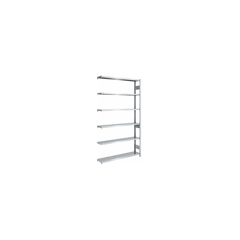 Scaffale a innesto per carichi pesanti, zincato, due lati utili, altezza scaffali 2500 mm, 6 ripiani, scaffale aggiuntivo, largh. x prof. 1300 x 300 mm. Fornitura = smontato. Tipo di scaffale = scaffale aggiuntivo. Portata ripiani = 300 kg. Portata campata = 2100 kg. Altezza scaffale = 2500 mm. Larghezza totale = 1310 mm. Materiale = acciaio. Superficie = zincatura. Numero ripiani = 6 pz. Colore montanti = zincatura. Materiale ripiani = acciaio. Colore ripiani = zincatura. Scaffale a innesto per carichi pesanti zincato, con traverse di rinforzo, per impiego su entrambi i lati.