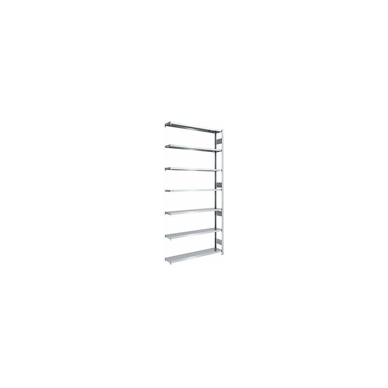 Scaffale a innesto per carichi pesanti, zincato, due lati utili, altezza scaffali 3000 mm, 7 ripiani, scaffale aggiuntivo, largh. x prof. 1300 x 300 mm. Fornitura = smontato. Tipo di scaffale = scaffale aggiuntivo. Portata ripiani = 300 kg. Portata campata = 2400 kg. Altezza scaffale = 3000 mm. Larghezza totale = 1310 mm. Materiale = acciaio. Superficie = zincatura. Numero ripiani = 7 pz. Colore montanti = zincatura. Materiale ripiani = acciaio. Colore ripiani = zincatura. Scaffale a innesto per carichi pesanti zincato, con traverse di rinforzo, per impiego su entrambi i lati.