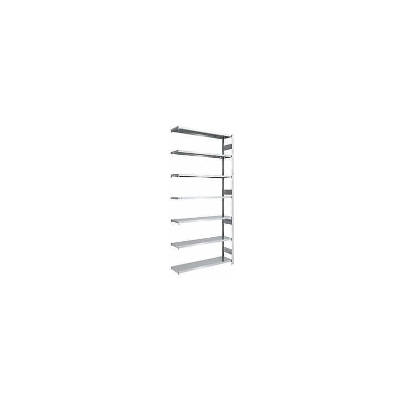 Scaffale a innesto per carichi pesanti, zincato, due lati utili, altezza scaffali 3000 mm, 7 ripiani, scaffale aggiuntivo, largh. x prof. 1300 x 400 mm. Fornitura = smontato. Tipo di scaffale = scaffale aggiuntivo. Portata ripiani = 315 kg. Portata campata = 2400 kg. Altezza scaffale = 3000 mm. Larghezza totale = 1310 mm. Materiale = acciaio. Superficie = zincatura. Numero ripiani = 7 pz. Colore montanti = zincatura. Materiale ripiani = acciaio. Colore ripiani = zincatura. Scaffale a innesto per carichi pesanti zincato, con traverse di rinforzo, per impiego su entrambi i lati.