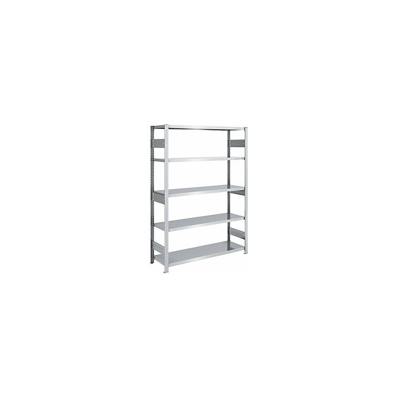 Scaffale a innesto per carichi pesanti, zincato, due lati utili, altezza scaffali 2000 mm, 5 ripiani, scaffale portante, largh. x prof. 1300 x 500 mm. Fornitura = smontato. Tipo di scaffale = scaffale portante. Portata ripiani = 330 kg. Portata campata = 2100 kg. Altezza scaffale = 2000 mm. Larghezza totale = 1360 mm. Materiale = acciaio. Superficie = zincatura. Numero ripiani = 5 pz. Colore montanti = zincatura. Materiale ripiani = acciaio. Colore ripiani = zincatura. Scaffale a innesto per carichi pesanti zincato, con traverse di rinforzo, per impiego su entrambi i lati.