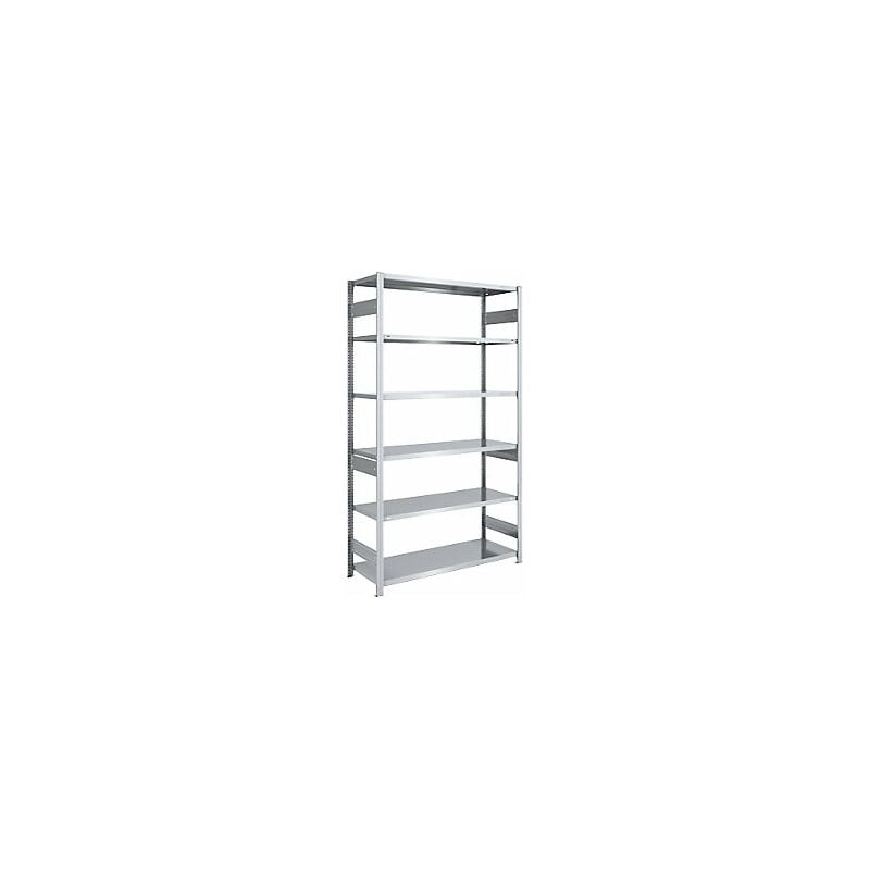 Scaffale a innesto per carichi pesanti, zincato, due lati utili, altezza scaffali 2500 mm, 6 ripiani, scaffale portante, largh. x prof. 1300 x 600 mm. Fornitura = smontato. Tipo di scaffale = scaffale portante. Portata ripiani = 330 kg. Portata campata = 2100 kg. Altezza scaffale = 2500 mm. Larghezza totale = 1360 mm. Materiale = acciaio. Superficie = zincatura. Numero ripiani = 6 pz. Colore montanti = zincatura. Materiale ripiani = acciaio. Colore ripiani = zincatura. Scaffale a innesto per carichi pesanti zincato, con traverse di rinforzo, per impiego su entrambi i lati.