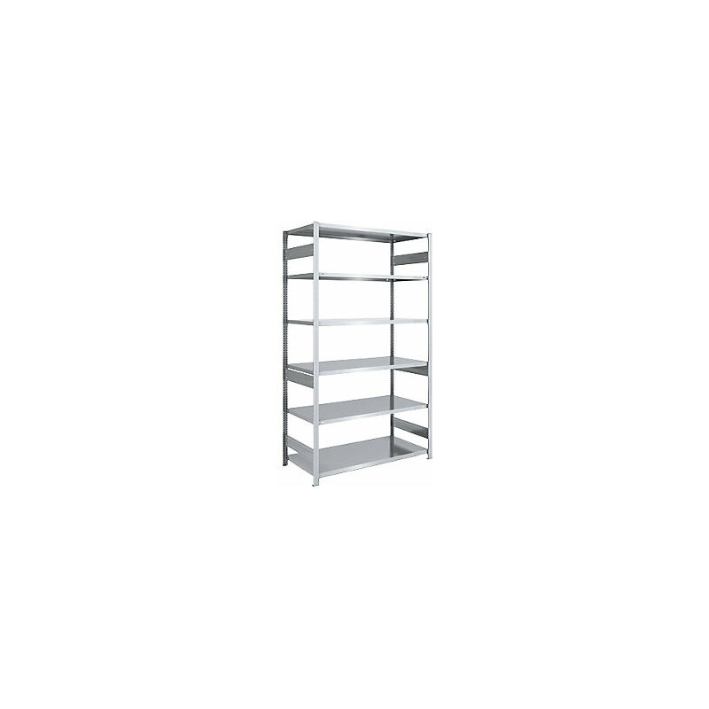 Scaffale a innesto per carichi pesanti, zincato, due lati utili, altezza scaffali 2500 mm, 6 ripiani, scaffale portante, largh. x prof. 1300 x 800 mm. Fornitura = smontato. Tipo di scaffale = scaffale portante. Portata ripiani = 330 kg. Portata campata = 2100 kg. Altezza scaffale = 2500 mm. Larghezza totale = 1360 mm. Materiale = acciaio. Superficie = zincatura. Numero ripiani = 6 pz. Colore montanti = zincatura. Materiale ripiani = acciaio. Colore ripiani = zincatura. Scaffale a innesto per carichi pesanti zincato, con traverse di rinforzo, per impiego su entrambi i lati.