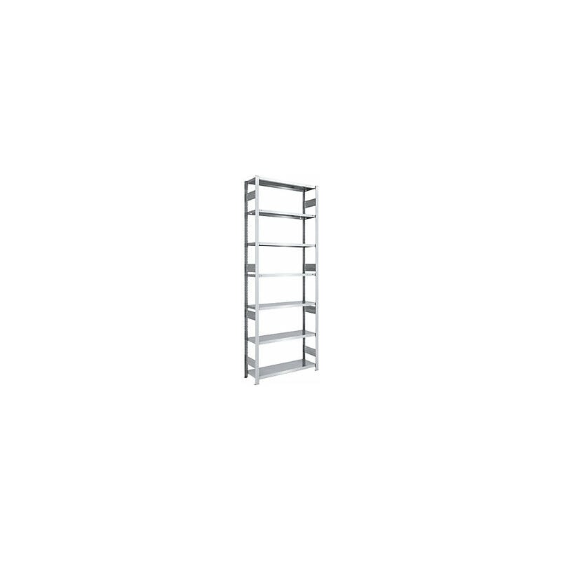 Scaffale a innesto per carichi pesanti, zincato, due lati utili, altezza scaffali 3000 mm, 7 ripiani, scaffale portante, largh. x prof. 1000 x 400 mm. Fornitura = smontato. Tipo di scaffale = scaffale portante. Portata ripiani = 315 kg. Portata campata = 2400 kg. Altezza scaffale = 3000 mm. Larghezza totale = 1060 mm. Materiale = acciaio. Superficie = zincatura. Numero ripiani = 7 pz. Colore montanti = zincatura. Materiale ripiani = acciaio. Colore ripiani = zincatura. Scaffale a innesto per carichi pesanti zincato, con traverse di rinforzo, per impiego su entrambi i lati.
