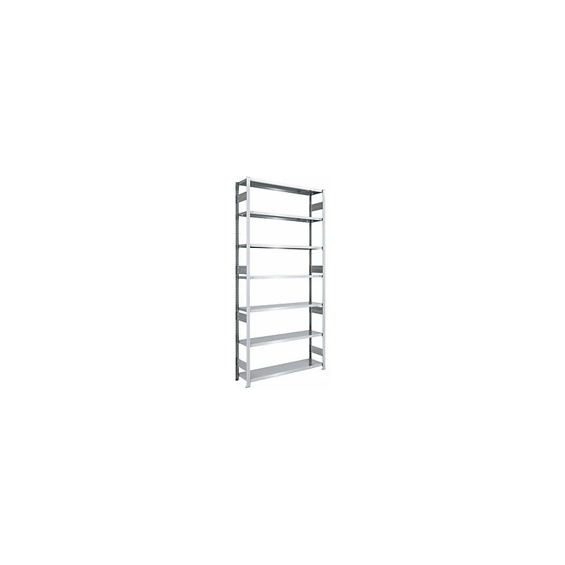 Scaffale a innesto per carichi pesanti, zincato, due lati utili, altezza scaffali 3000 mm, 7 ripiani, scaffale portante, largh. x prof. 1300 x 400 mm. Fornitura = smontato. Tipo di scaffale = scaffale portante. Portata ripiani = 315 kg. Portata campata = 2400 kg. Altezza scaffale = 3000 mm. Larghezza totale = 1360 mm. Materiale = acciaio. Superficie = zincatura. Numero ripiani = 7 pz. Colore montanti = zincatura. Materiale ripiani = acciaio. Colore ripiani = zincatura. Scaffale a innesto per carichi pesanti zincato, con traverse di rinforzo, per impiego su entrambi i lati.