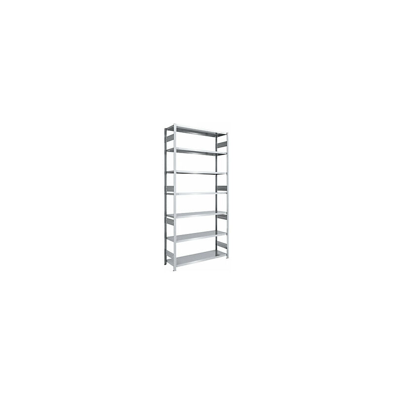 Scaffale a innesto per carichi pesanti, zincato, due lati utili, altezza scaffali 3000 mm, 7 ripiani, scaffale portante, largh. x prof. 1300 x 500 mm. Fornitura = smontato. Tipo di scaffale = scaffale portante. Portata ripiani = 330 kg. Portata campata = 2400 kg. Altezza scaffale = 3000 mm. Larghezza totale = 1360 mm. Materiale = acciaio. Superficie = zincatura. Numero ripiani = 7 pz. Colore montanti = zincatura. Materiale ripiani = acciaio. Colore ripiani = zincatura. Scaffale a innesto per carichi pesanti zincato, con traverse di rinforzo, per impiego su entrambi i lati.