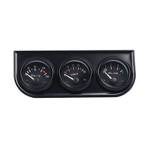 Color Black Material ABS(Acrylonitrile Butadiene Styrene) + Iron Size Approx. 18.7 x 7.7 x 5.2cm/7.36 x 3.03 x 2.05'' Each Gauge Diameter 52mm/2.05'' Voltage DC 12V Voltmeter Range 8V-16V Oil Temperature Gauge Range 50-150℃ Water Temperature Gauge Measurement Range 40-120℃ Oil Pressure Gauge Measuring Range 0-7kg