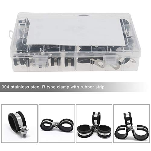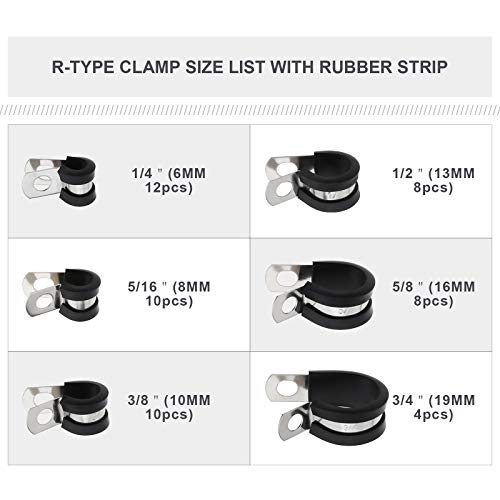 52pcs 304 Pinze a forma di R in acciaio inossidabile 6-19mm foderate in gomma pinze a P staffa di fissaggio cavo isolato ammortizzato per tubo filo cavo