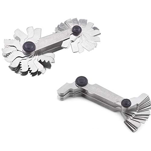 [Eccellente strumento di ispezione dell'angolo]: il misuratore di filettatura in acciaio inossidabile è utile per controllare l'angolo dell'utensile durante il taglio di filettature nei torni di tornitura in metallo. Applicato per misurare il passo del filo e del dente del filo esterno, un ottimo strumento di misurazione per il tuo lavoro.