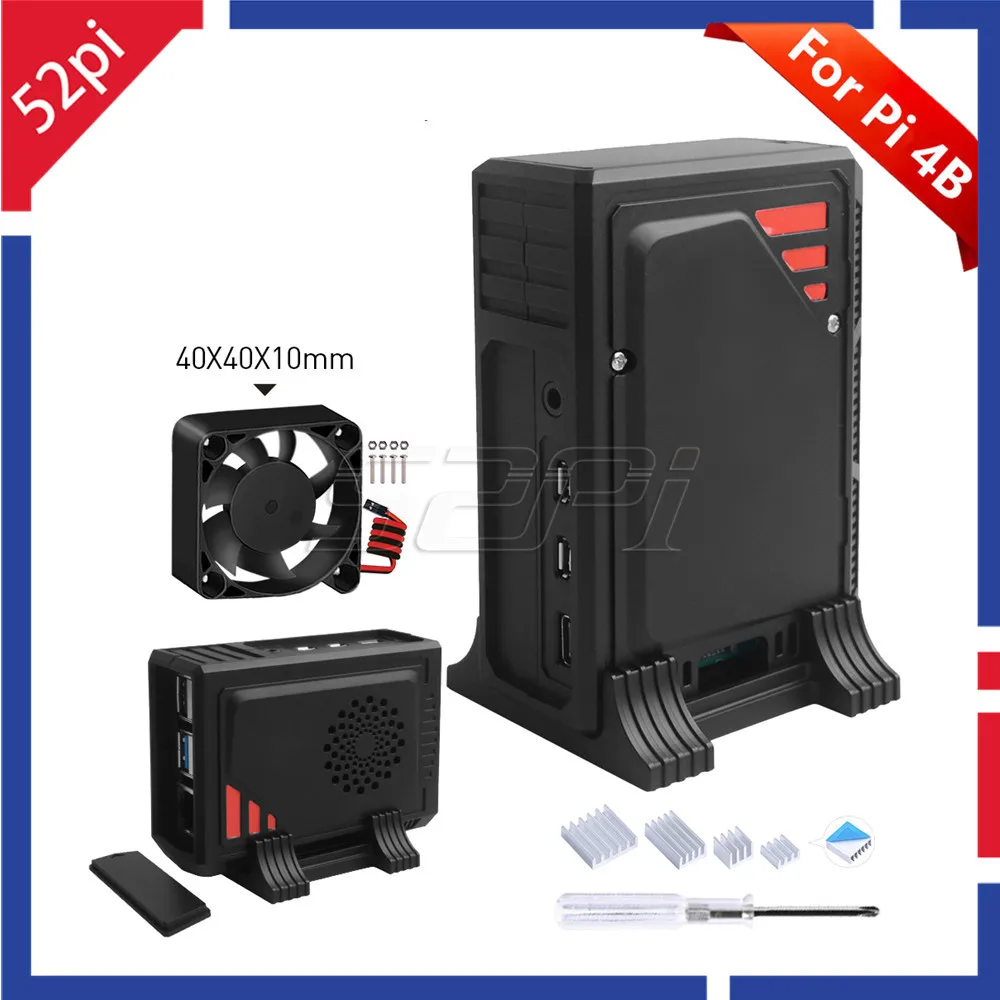 52Pi Icon Case With 4010 LED Light Fan and All Aluminum Heat Sink for Raspberry Pi 4B Pi 4 Model B