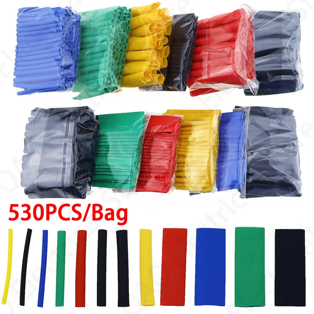 530pcs/Bag2:1 Wrap Wire Cable Insulated Polyolefin Heat Shrink Tube Ratio Tubing Insulation Shrinkable Tubes